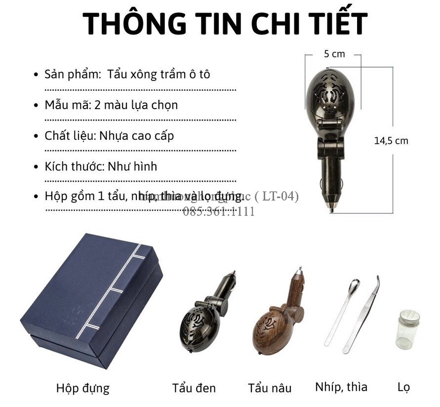 1. Giới thiệu về Tẩu xông trầm hương cao cấp đa chức năng dùng trên ô tô (LT-04)